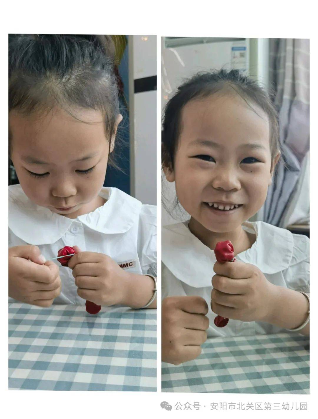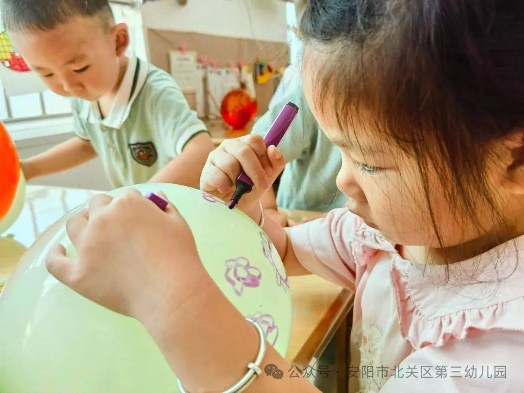 “我給氣球畫上漂亮的蝴蝶結(jié)!”