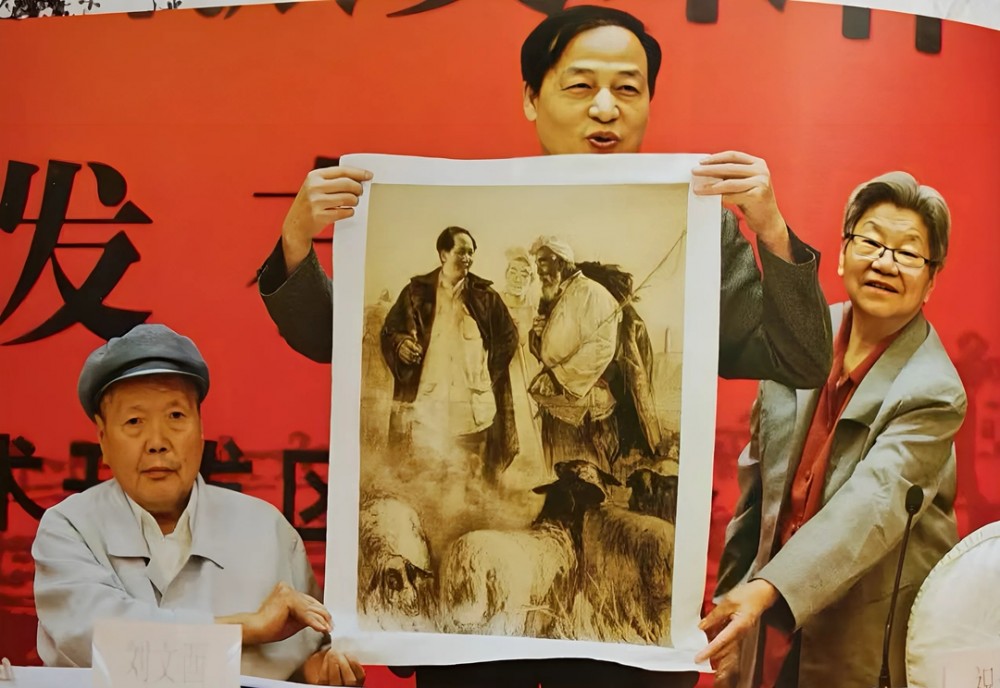 劉文西、陳光健、祝天華共同舉起劉文西的代表作《毛主席與牧羊人》