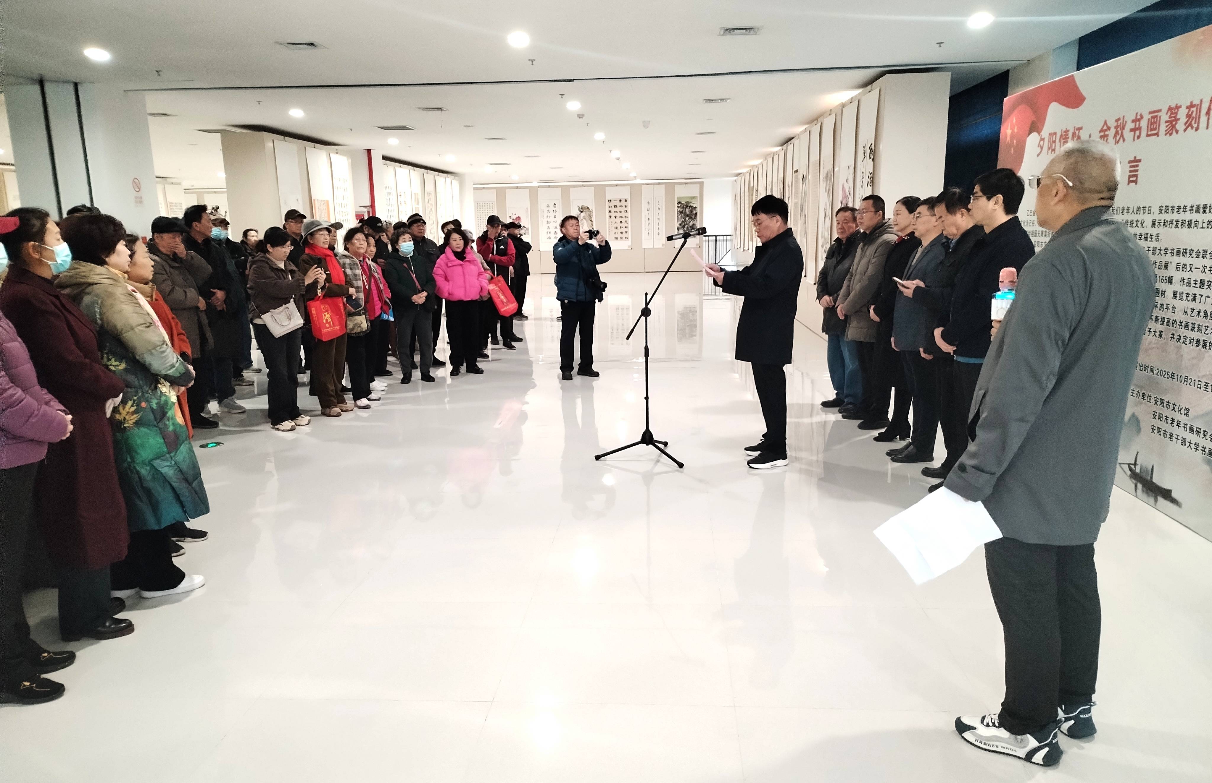 金秋十月是色彩繽紛美麗的季節,是碩果豐收的時節。2025年10月21日上午,由安陽市文化館、安陽市老年書畫研究會市直分會、安陽市老干部大學書畫研究會共同舉辦的“夕陽情懷·金秋書畫篆刻作品展” 在市文化館三樓隆重開幕。活動由安陽市老年書畫研究會市直分會會長付作臣主持。