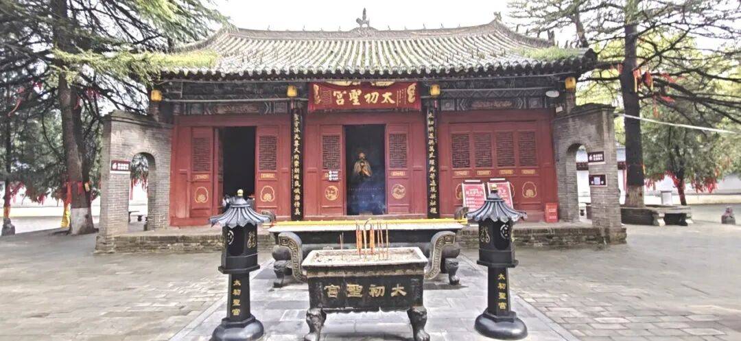 想著想著,我們已穿過松柏蓊郁的道家廣場,來到寧靜神秘的太初圣宮前。這座宮殿坐北朝南,為三間磚木硬山廡殿式結(jié)構(gòu),與景區(qū)內(nèi)其他“高大上”的仿古建筑相比,雖然顯得矮小、簡陋,我卻對它情有獨(dú)鐘。因它的諸多建筑構(gòu)件源自唐、元、明、清各代;宮脊與山墻檐邊,黃綠琉璃獅虎麒麟等瑞獸,或蹲或伏、呼之欲出;建筑風(fēng)格寓道教特色于歷代營造技藝之中,堪稱中國北方古典建筑演變的“活化石”。更重要的是,傳說老子騎青牛過關(guān)時,被望見紫氣浮關(guān)、料有圣人將至的關(guān)令尹喜苦苦挽留,在此居住半年有余,寫下洋洋五千言的傳世經(jīng)典《道德經(jīng)》。這座小小的太初圣宮,無疑是《道德經(jīng)》誕生的“產(chǎn)房”,亦是道家思想與道教文化的源頭和地標(biāo)。還有,前文所述唐玄宗與“靈符”的離奇故事,亦發(fā)生在眼下我腳踏的這片方寸之地上。于是,在我眼中,這座古樸的圣宮漸漸化作一部凝固的立體史書,每一道磚縫、每一處瓦隙,似乎都藏著無盡的歷史密碼。