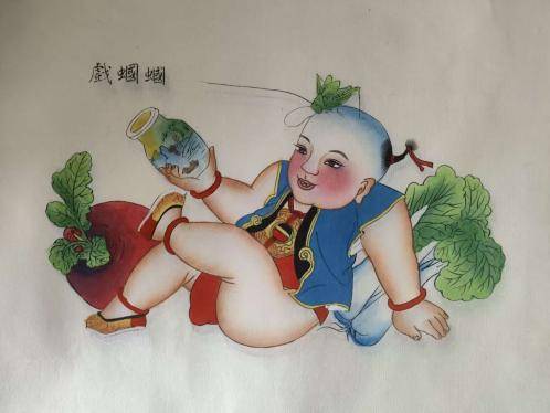 《戲蟈蟈》,“蟈蟈”諧音“哥哥”,故舊民俗中叫“蟈蟈”為育男孩之兆。