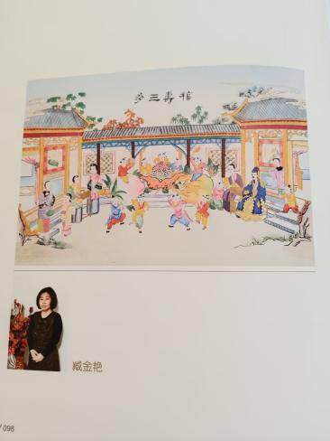 她擅長的就是楊柳青年畫的人工彩繪,堅持描繪版畫已經(jīng)十幾個春秋了。她是一名普通的農(nóng)村婦女,高中畢業(yè)后在企業(yè)上班,通過她的妹妹結(jié)識了美術(shù)老師,從此喜歡上了繪畫藝術(shù),開始利用業(yè)余時間打磨學(xué)習(xí)繪畫。期間,在天津師范大學(xué)、天津美術(shù)學(xué)院、楊柳青年畫協(xié)會辦班學(xué)習(xí)。因為入班學(xué)習(xí)需要時間,有一階段就辭去了工作,專心學(xué)習(xí)彩繪技巧。現(xiàn)在主要是以學(xué)楊柳青年畫彩繪為主了,在楊柳青畫社班學(xué)習(xí)。大家都知道,一個女人想成就自己熱愛的事業(yè),需要有很大的勇氣和精力的。一幅畫,親自動筆描繪不少于幾百次,顏料的調(diào)色,線條的描繪,沒有靜心的專注力是完不成一部作品的。它不同于其它論文詩歌的,錯一筆可以涂改更正,而年畫有一點偏差整幅作品就得報廢。