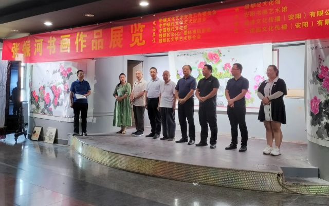 9月6日,在中華人民共和國成立75年華誕之際,中媒文化藝術(shù)交流工作委員會、中華現(xiàn)代文學(xué)藝術(shù)促進(jìn)會、中國現(xiàn)代文化網(wǎng)、殷都區(qū)文化廣播體育旅游局、殷都區(qū)文學(xué)藝術(shù)聯(lián)合會主辦,殷都區(qū)文化館、安陽書畫藝術(shù)館、榮清文化傳播(安陽)有限公司、三館園文化傳播(安陽)有限公司承辦的張振河書畫作品展在河南安陽書畫藝術(shù)館開幕。