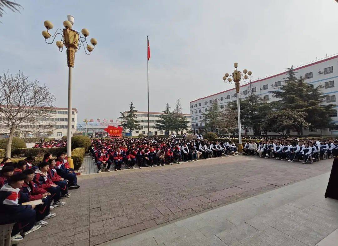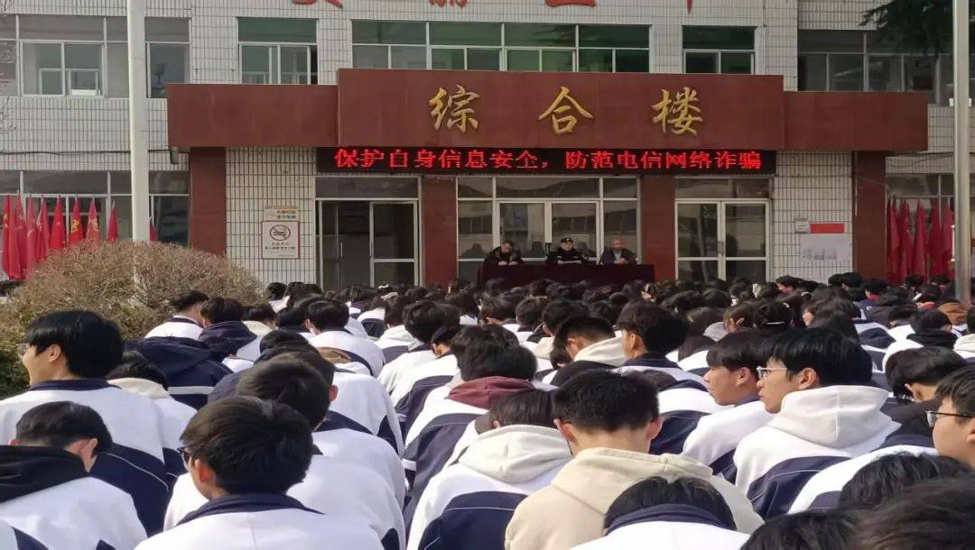 講座在操場開展,全體學生齊聚于此,全神貫注,聚精會神,現(xiàn)場氣氛熱烈而莊重。