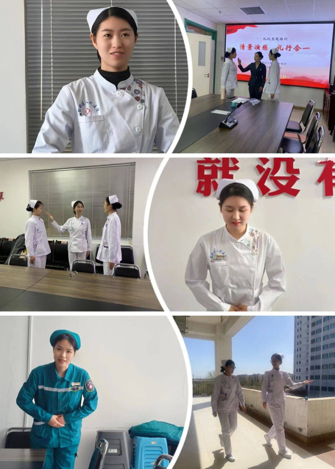 練習(xí)中,整潔的外表、自信的微笑、真誠的目光,熟練而輕柔的動作感染著每一個人。一個會心的微笑,一句簡單的問候,都讓在場的護理人員切實感受到,禮儀溫暖患者的同時,亦是自我身心的一個提升。